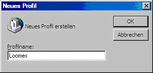 Es öffnet sich die folgende Dialogbox, in der Sie den Namen für das zu erstellende Profil (z.B. Loomes) eingeben:
